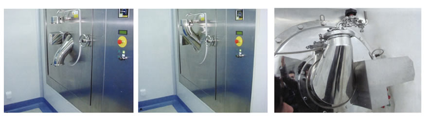 本產品對膠塞、鋁(lǚ)蓋處理工藝主要(yào)采(cǎi)用先進(jìn)的真空吸料、蒸汽滅菌、真空幹(gàn)燥等(děng)工序。膠塞、鋁蓋從自動吸(xī)料(liào)、強力噴淋、慢速翻滾、超聲波 等多項技(jì)術作(zuò)用下洗滌、矽化、蒸汽滅菌、真空幹(gàn)燥、熱風再熱抽真空幹燥,至自動出料,全在一機(jī)內PLC程控器(qì)控製下(xià)全(quán)自動操作完成, 無中間轉序,不產(chǎn)生交叉汙染,同時本(běn)機對(duì)各工(gōng)序的運作狀態,能在顯示(shì)屏上(shàng)動態顯示,直觀了解機組運行情況和自動記錄各(gè)項運動參數。