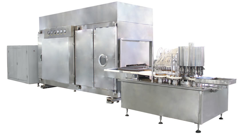 本機組符合“cGMP”要求,適用(yòng)於口服液瓶的清洗、烘幹滅菌及液體(tǐ)計量分裝。由CLQ-A型(xíng)鏈式超聲(shēng)波清洗機、MSH型高溫滅菌隧(suì)道烘箱、YGZ型口服(fú)液(yè)劑灌封機組合。